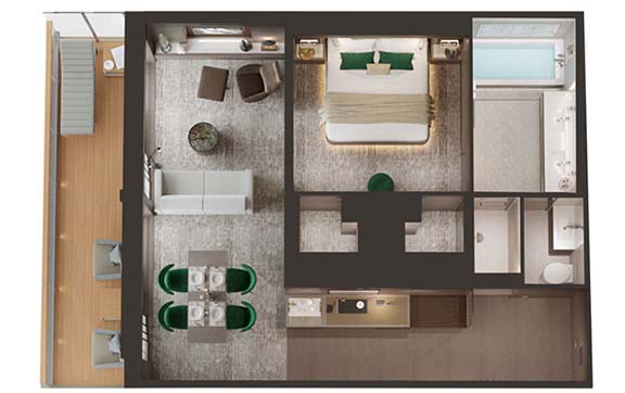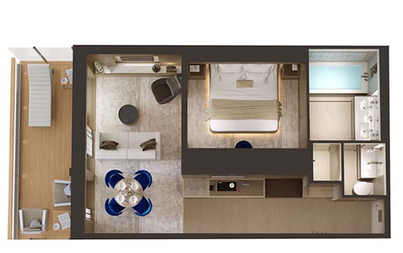 Feel at ease in your private oasis at sea, with included service and amenities that set a new standard for luxury travel.