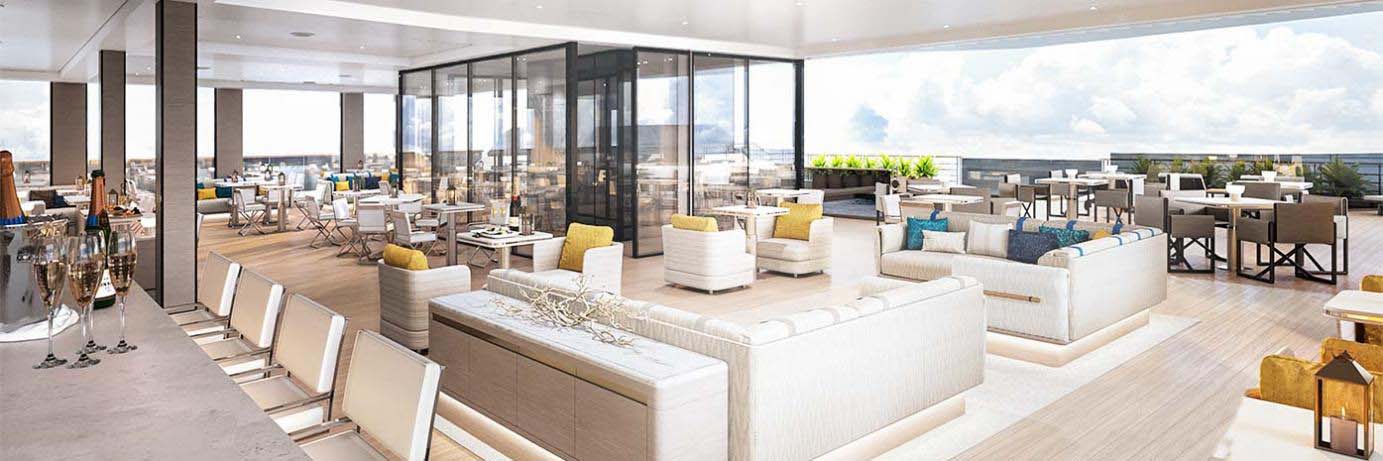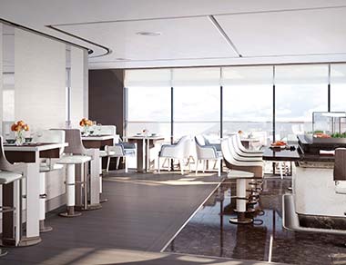 Top-deck views erase the borders between land and sea, an inspired setting for lounging, cocktails or socializing. At twilight, the space is transformed into a venue with cocktails and live entertainment, extending into a late-night hangout. Whether exploring on luxury repositioning cruises, luxury Baltic cruises, US-based cruises, or anything in between, The Observation Lounge is your vantage point for sightseeing anywhere at sea.