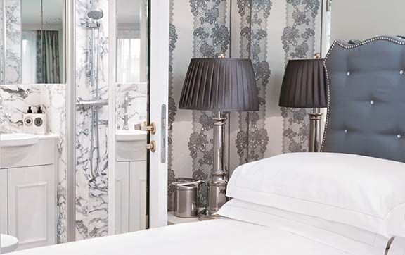 Handcrafted Savoir® of England beds, built-in closets, hair dryer, safe, individual climate-control thermostat, direct-dial telephone, flat-screen TV with infotainment center