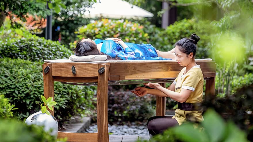 Relax in a soothing bath infused with 60,000 dragon-well tea leaves as part of our Dragon-Well Tea and Jade Spring Ritual, a fragrant collection of treatments that work in harmony to restore your body’s equilibrium.