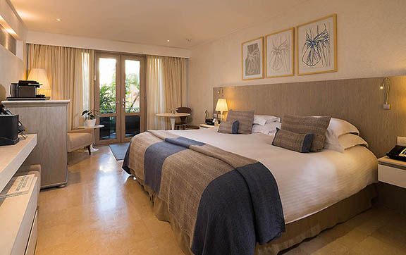 Renovated room measuring 366 sq. ft. on the 5th floor of the 19th century Republican section, with high ceilings, wooden beams, shower or tub, balcony, pool or sea views, LCD TV, Bose® SoundDock®, Sofitel MyBed, free WIFI, Nespresso® machine and butler.