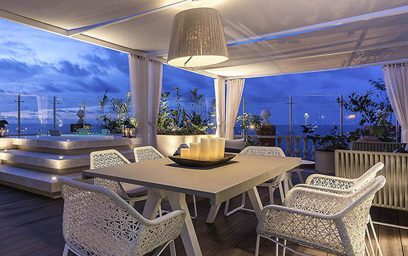 Renovated Imperial Suite measuring 2,325 sq. ft. (216 m²) located on the 5th floor with sea views. Equipped with a deck with whirlpool bath, Bose® equipment, Hermès products, LCD TV, Sofitel MyBed, WIFI, private transfer, VIP treatment and butler.