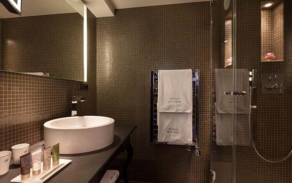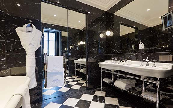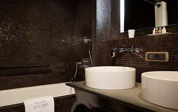 Open daily from 7am – 9pm, there are two peaceful treatment rooms and a dedicated menu of treatments, designed specifically for Pavillon de la Reine. With gently babbling water, soft pebble flooring, ceramic murals and soft lighting, the spa is a wonderfully relaxing place to soothe the senses.