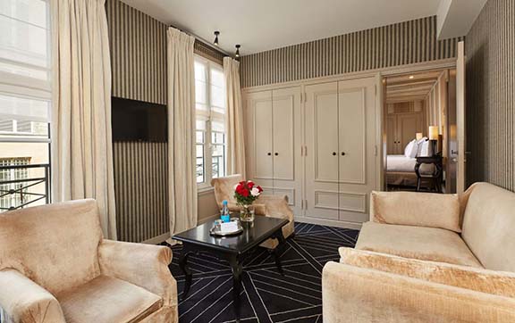 Suite de la Reine is Pavillon de la Reine’s most spacious suite, spanning 860 square feet.