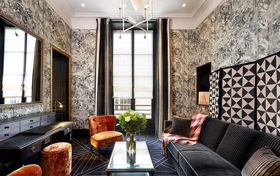The hotel’s 56 bedrooms and suites is embellished with its distinctive façade and a private courtyard garden, awash with greenery.