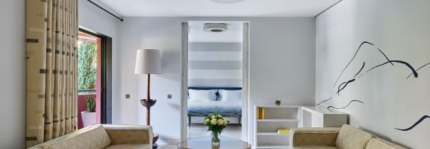 Timeless chic awaits you in this junior suite surrounded by a wonderful pine forest. You have a rendez-vous with the elegance of the French Riviera.