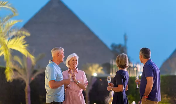 Arrive in Egypt and enjoy a seamless private transfer to the iconic Mena House Hotel, set beneath the majestic Pyramids of Giza. Unwind and raise a glass to the beginning of your luxurious Egyptian journey.