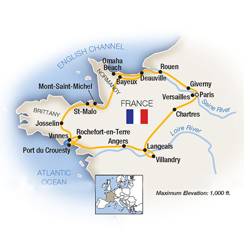 - TAUCK’S YELLOW ROADS – Explore Brittany’s rugged headlands, the Normandy coast, historic D-Day beaches and Paris