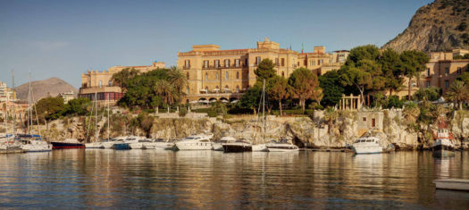 Rooms boast high ceilings, draped curtains, flock wallpaper and marble bathrooms. Panoramic windows offer views of the sea, courtyards and Pellegrino Mountain.