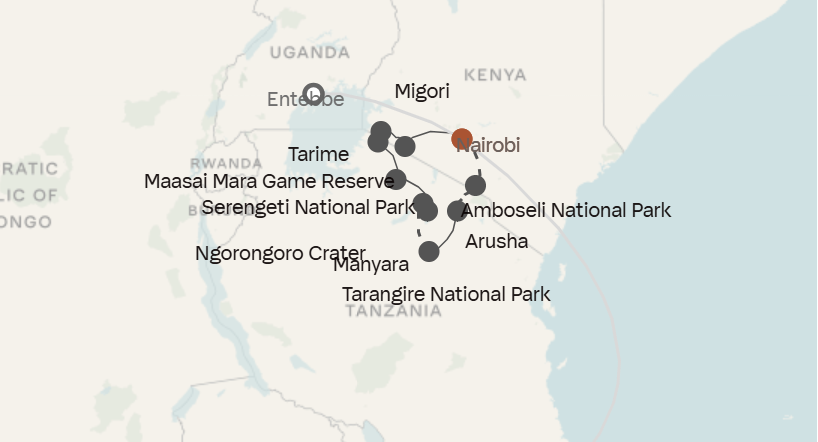 Experience one of the world’s greatest wildlife spectacles as migrating zebras and wildebeest, along with their predators, move across Kenya and Tanzania. Travel between top national parks by air or road with expert guides, and stay in premium camps and lodges throughout your journey.