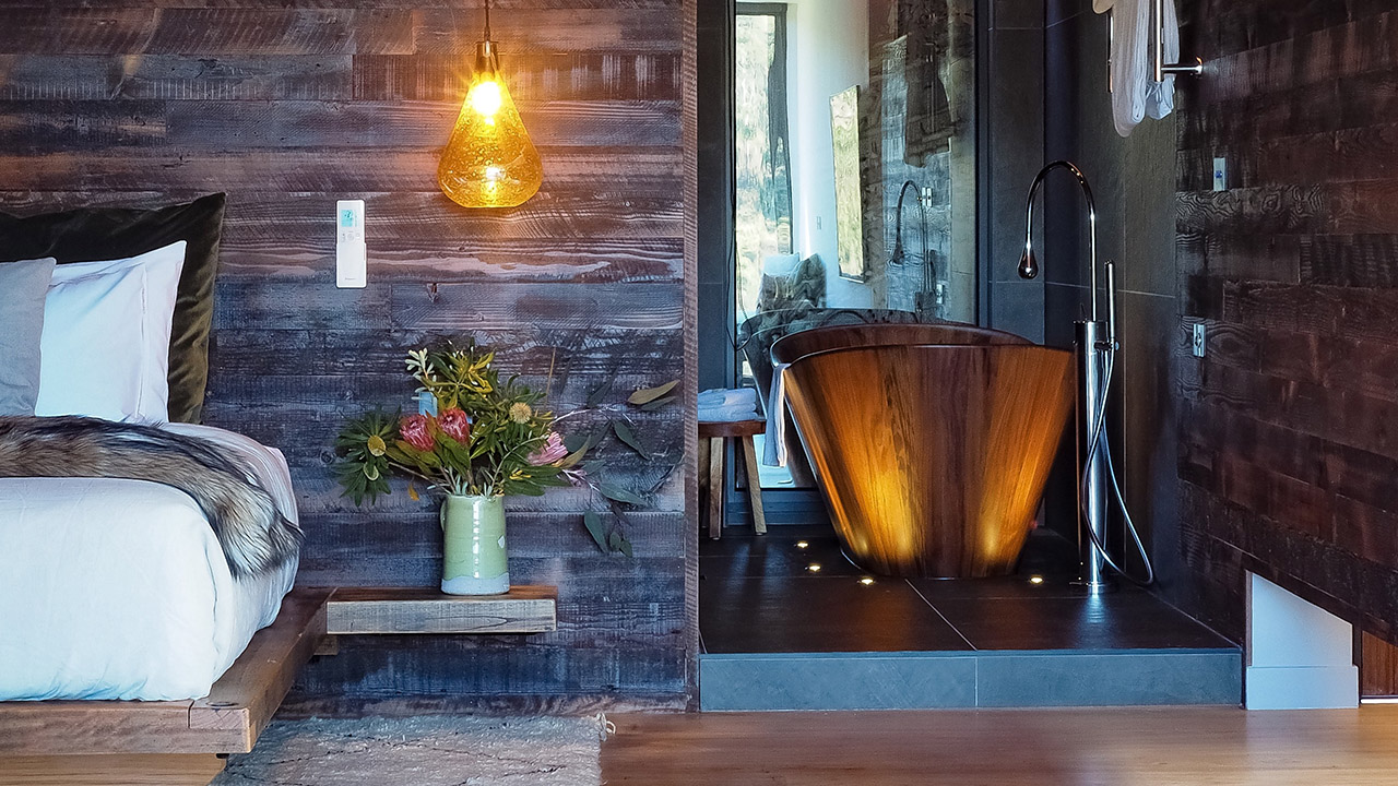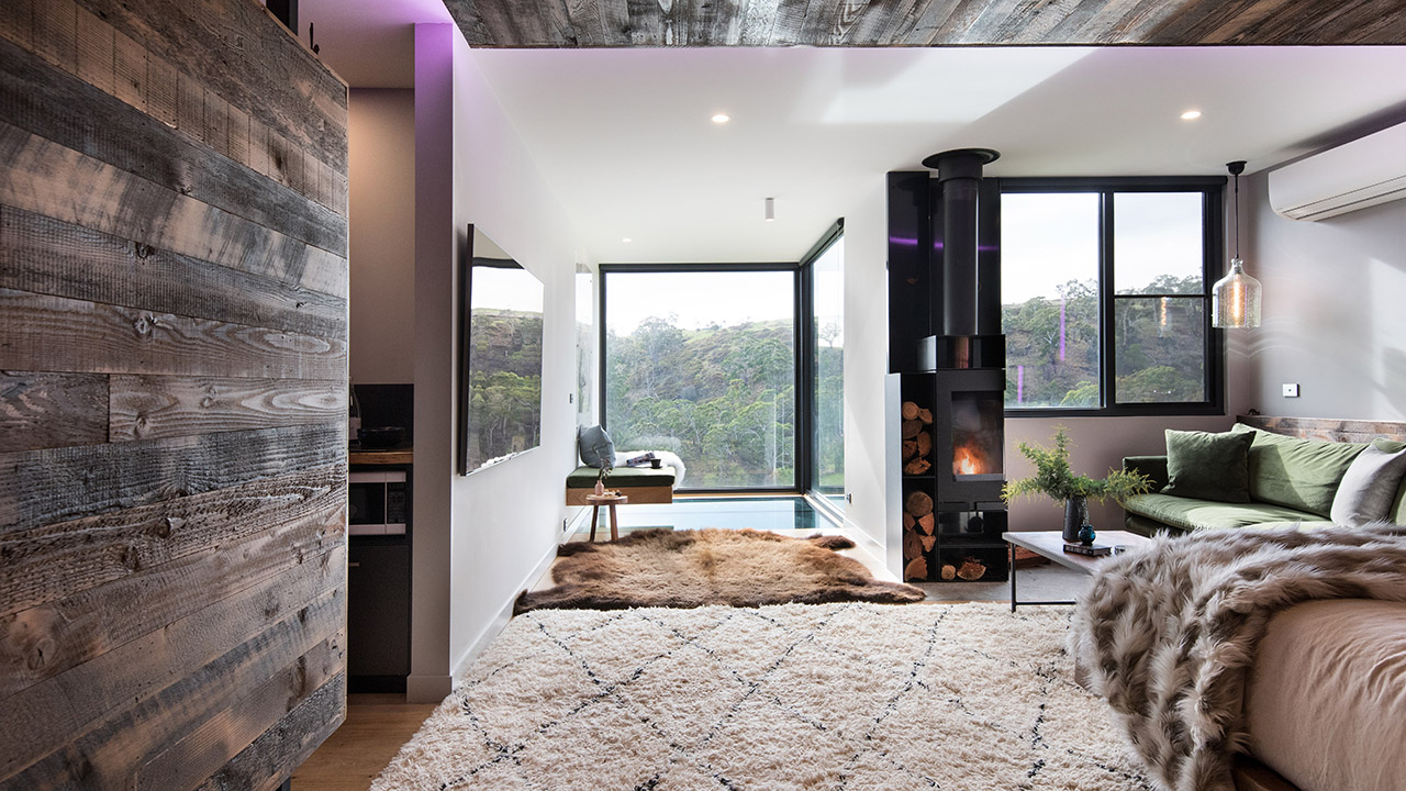 These gorgeous luxury villas have been designed by local Daylesford architect Robin Larsen and feature a sleek architecture with rusted Corten steel facade warmed by streaks of light by day and enhanced by mood lighting at night. And, rest assured, the interiors are equally as impressive.