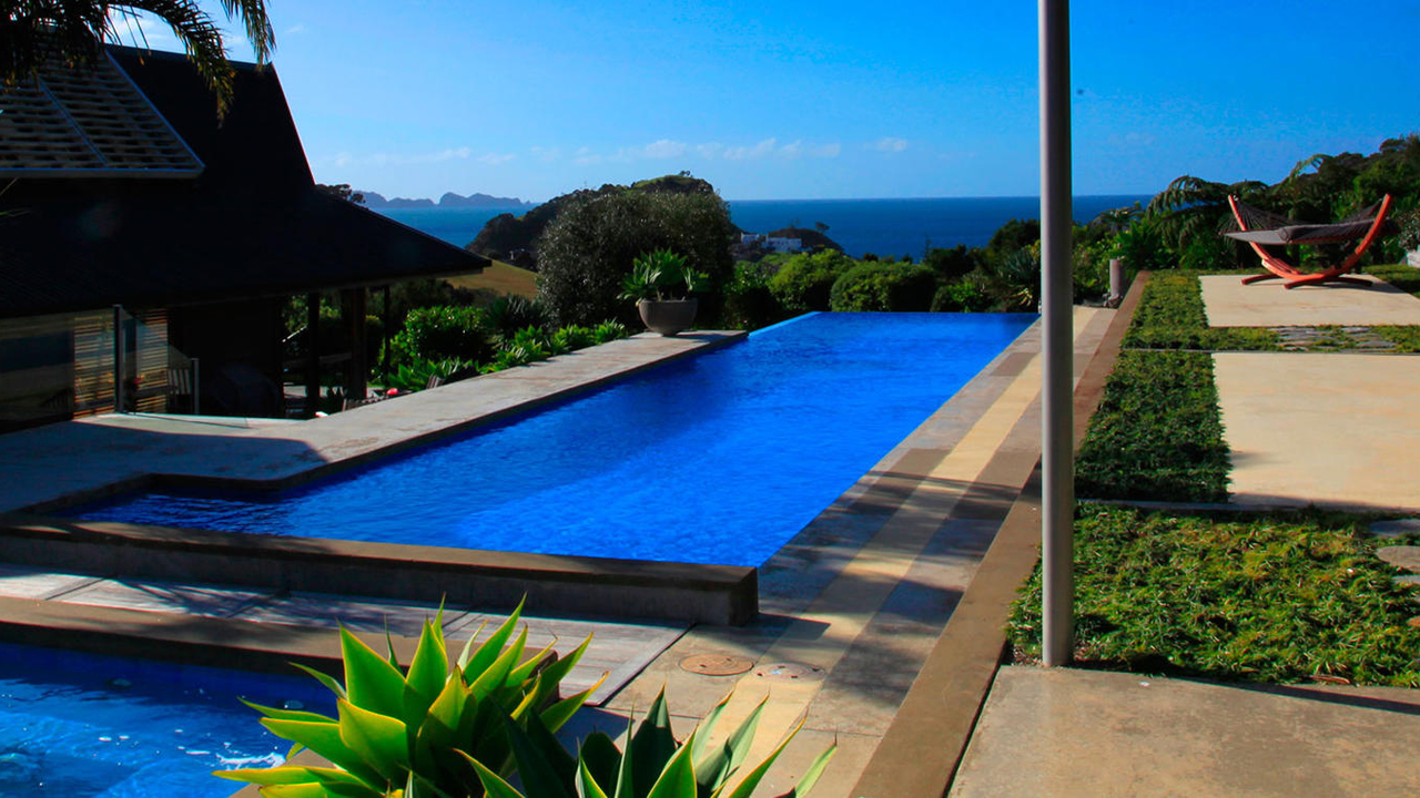 The Eyrie is situated high up in native bush overlooking the ocean and out to Waitangi, Paihia and the Islands of the North. This luxury villa features three bedrooms with en-suites, a home theatre and an 18 m heated infinity pool. The gourmet kitchen overlooks the private and secluded garden, surrounded by tropical plants and alive with native birds.