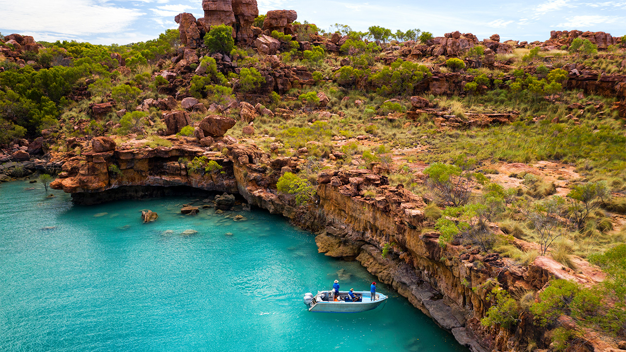 Exclusive retreat in the Top End, nestled on the pristine shores of the Admiralty Gulf in the Kimberley wilderness accessible only via air. Boasting spectacular scenery, gourmet food, excellent fishing and ancient rock art.