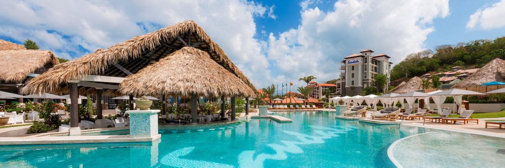 Defying every convention of traditional design, the new Sandals LaSource Grenada takes innovation beyond the realm of imagination to create an extraordinary resort unlike anything you have ever experienced. Pools in the sky and living rooms in swimming pools. Private plunge pools, cascading waterfalls and meandering river pools. Here, in the heart of Grenada’s exclusive Pink Gin Beach, on an exotic island paradise where the intoxicating scents of spice and tropical blooms make a heady elixir for romance, Sandals LaSource Grenada has taken the best of everything to create a whole new Sandals experience… one that takes you beyond the unexpected.