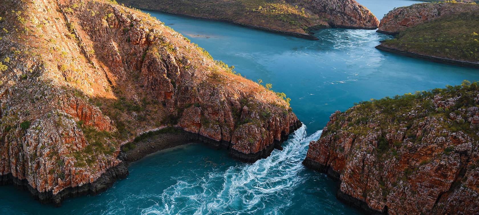 - Discover the Kimberley coast’s labyrinth of coves, valleys and gorges with Zodiac excursions, exploring the mangrove-dotted Hunter River and the canyons and twin falls of King George River