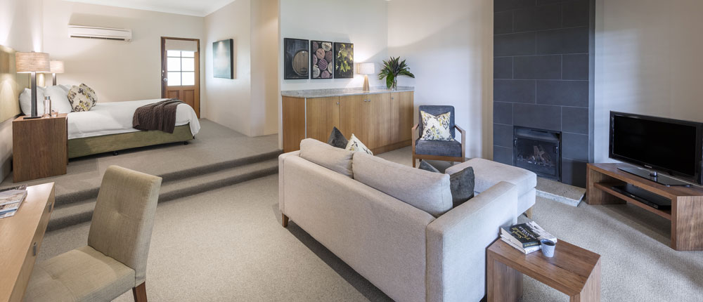 Our boutique five star retreat has just 12 luxury suites each with its own fireplace plus a separate four bedroom house.
